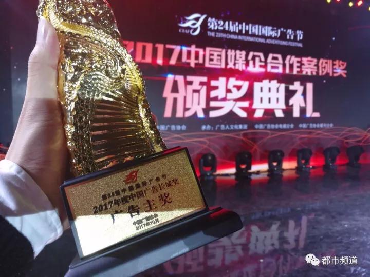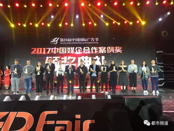 在2017中國廣告長城獎·廣告主獎之媒企合作案例獎頒獎現場,河南都市頻道榮獲6項營銷大獎。都市頻道團隊憑借廣告與節目的融合、專業的服務水準、勇于創新營銷策劃能力,獲得“中國長城獎2017年度金伙伴獎”。