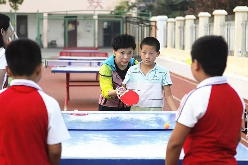 鄧亞萍與小隊長切磋球技 關注體育教育基礎發展