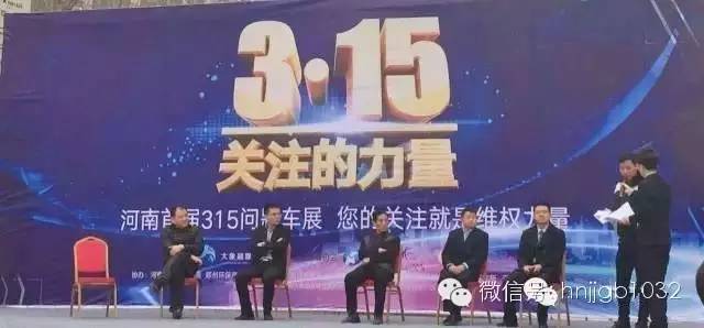 3月15日上午,河南首屆315問題車展鄭州市惠濟(jì)區(qū)三全路與長興路交叉口的鄭州裕華廣場(chǎng)舉辦,河南經(jīng)濟(jì)廣播聯(lián)合大象融媒民生頻道、河南省消費(fèi)者協(xié)會(huì)、騰訊大豫網(wǎng),以及河南職業(yè)機(jī)電學(xué)院、鄭州環(huán)保產(chǎn)業(yè)協(xié)會(huì)室內(nèi)環(huán)境檢測(cè)治理服務(wù)中心、河南中小企業(yè)手機(jī)臺(tái)、河南至誠機(jī)動(dòng)車司法鑒定所、予順律師事務(wù)所等多家單位聯(lián)合舉辦了“關(guān)注的力量——河南首屆315問題車展”。