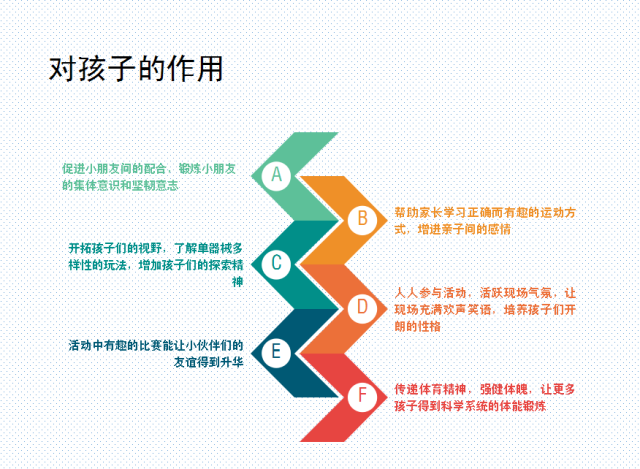 “趣味親子運(yùn)動(dòng)趴”根據(jù)孩子年齡不同設(shè)置指標(biāo),由家長和孩子共同參與、相互協(xié)作完成,是一次從耐力到動(dòng)手能力、反應(yīng)力到創(chuàng)造力,速度與平衡全面考量的一系列親子活動(dòng),從“歡樂親子跑”到“趣味體能大沖關(guān)”,不但提高幼兒的活動(dòng)技能,開拓孩子們的視野,增加孩子們的探索精神,增強(qiáng)少年兒童的身體素質(zhì)的,又寓教于樂,有利于孩子們身心健康成長,同時(shí)讓家長們也了解正確而有趣的運(yùn)動(dòng)方式,更好的增進(jìn)父母與孩子間感情。