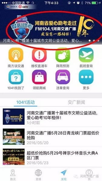 高考期間,河南交通廣播倡導(dǎo)全省車友綠色出行、在交廣領(lǐng)航上用愛心點(diǎn)亮河南地圖;