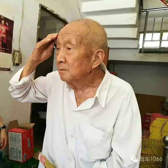 老兵說,為國家效力是值得的,我16歲當兵,今年91,要不是因為我為國家出力,你們這群孩子能都跑過來看我?咱中國,誰都欺負不了……