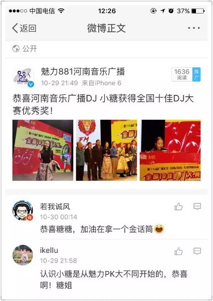 2016全國十佳DJ大賽,風云聚首!魅力881河南電臺音樂廣播DJ小糖榜上有名,恭喜DJ小糖獲得全國十佳DJ大賽優秀獎!