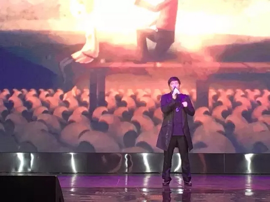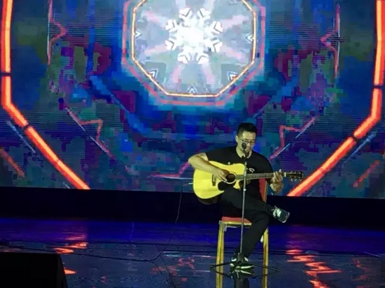 焦洋演唱《我愛你中國》等歌曲,得到臺下陣陣掌聲。