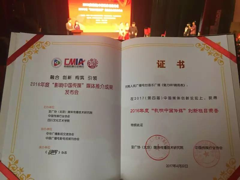 魅力881河南音樂廣播獲“最具創新力媒體”獎