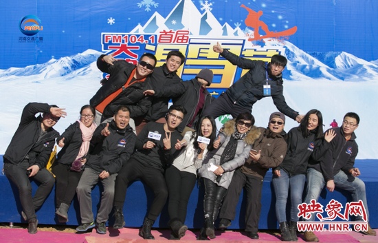 準備工作已經就緒,車友們已經按捺不住要滑雪的心情了,在滑雪正式開始之前,1041《MORE FUN 音樂》主持人王哲和《馬路歡樂派—早間》主持人彎彎,禹州市大鴻寨臥佛山旅游開發有限公司總經理王鋒偉先生也來給大家加油打氣了。