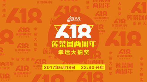 蓮菜網兩周年幸運大抽獎,將于今晚23:30開始,敬請關注。