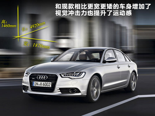 和現款相比新奧迪A6的車身尺為4920mm*1870mm*1460mm,相比現款車型更矮更寬,進口版還未加長的軸距就達到2910mm的尺寸,幾乎可以和現款加L的軸距尺寸相比了。這樣營造了更加運動的身段和彰顯霸氣的低矮姿勢。低矮寬大的尺寸讓我們看到自新寶馬5系以來,行政級別轎車越來越倡導的個性化和年輕化,和以前高高大大、四平八穩的行政轎車相比,現在的這些行政級別轎車則將舒適駕乘和個性外形結合的更緊密。