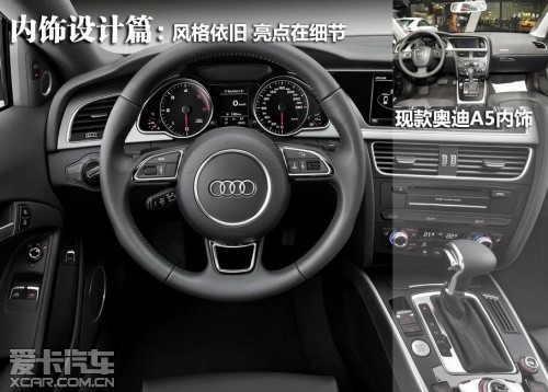 雖然新款?yuàn)W迪A5的中控臺(tái)布局沒有進(jìn)行新的設(shè)計(jì),但是新車采用了全新設(shè)計(jì)的儀表盤,一體化設(shè)計(jì)的儀表與內(nèi)飾的融合更加緊密。另外老款平庸的變速箱擋桿被更換,新的擋桿很容易激起我們的駕駛沖動(dòng),另外新車在MMI操作面板的很多細(xì)節(jié)上也有變化。