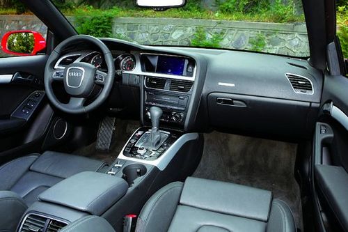 奧迪A5 Cabriolet 2.0T雖然身為一款敞篷跑車,但其內飾設計卻與奧迪轎車的整體風格完全一致。在這個座艙里,我們看不到大面積的金屬裝飾,也找不到刺激駕駛者腎上腺素分泌的夸張設計。黑色依然是座艙的核心色調,各種豪華配置告訴我們——這并不是一款過分追求動態性能的車,舒適才是它的首要任務。駕駛臺上,MMI多媒體互動系統依舊是所有座艙系統的核心。與上一代系統相比,新一代MMI多媒體交互系統的改進包括3個方面:第1,硬盤驅動的導航系統功能更加強大;第2,屏幕顯示和圖像處理能力均有提升;第3,操作按鍵的設計更加人性化,便于用戶靈活自如地使用各項功能。
