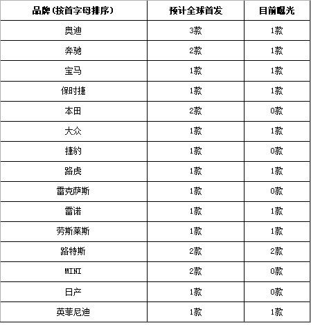 此前的2012北京國際車展新聞發(fā)布會上,主辦方就已正式宣布,此次展會將會有89款全球首發(fā)車型(量產(chǎn)車)現(xiàn)身,其中跨國公司的全球首發(fā)車型達到了14款之多。隨著車展前最后一周的到來,這些重磅車型也逐步浮出水面,目前我們能夠確認(rèn)的跨國公司全球首發(fā)車型有11款,當(dāng)然我們不能排除這些曝光或即將曝光的車型會出現(xiàn)跳票的情況,但無論如何,我們不妨提前預(yù)習(xí)一下這些代表未來的車展主角: