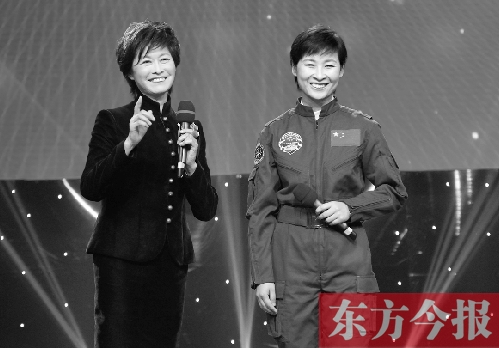 當一身藍色航天服的劉洋出現時,頒獎現場頓時響起熱烈的掌聲。