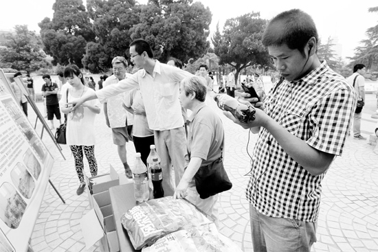 昨天上午,紫荊廣場,在公安機(jī)關(guān)繳獲的假飲料、糖貨展臺前,不少市民拿著假冒的可樂翻來覆去地看,想找出破綻。