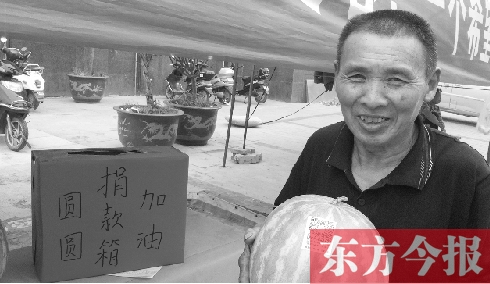 20日,東方今報報道了鄭州嵩山路辦事處嵩南社區聯合義工“練攤”叫賣愛心西瓜的事兒。昨日上午9時,嵩南社區郭文雅書記和工作人員來到了河南省煤炭總醫院,看望身患脊髓炎的小女孩圓圓,并送去了第一筆愛心西瓜善款。與此同時,嵩南社區門前的愛心瓜攤兒還在繼續叫賣,義工組織的愛心西瓜活動還在接力。□東方今報首席記者 申子仲/文圖