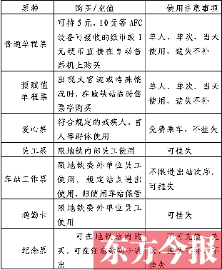 為了讓市民了解鄭州地鐵車票,運營分公司還專門解釋了鄭州地鐵開通初期發行的主要票種及相關規定(見表格)。