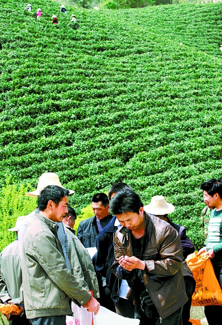 圖 浉河區浉河港鄉是信陽毛尖的主產區,這里山上采茶,山下就有很多客商現場進行鮮葉交易。