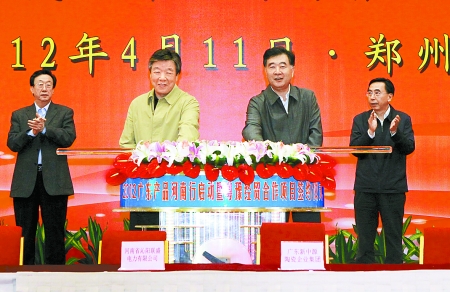 中共中央政治局委員、廣東省委書記汪洋與省委書記、省人大常委會主任盧展工共同啟動廣東產品河南行活動。河南日報記者 郭 宇 董 亮 攝
