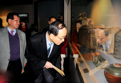 韓國朋友相繼參觀了河南博物院的《中原古代文明之光》基本陳列、《中原楚系青銅藝術館》、《河南古代玉器》、《河南明清館》等專題陳列的多個展覽。韓國朋友們精細地觀賞博物院陳展的文物,由衷感嘆中華民族祖先的智慧和博物院的陳列水準。曾80多次訪華、第64次來河南的“中國通”許由先生頗為內行的提問令講解員和陪同參觀的中國人員刮目相看。中韓建交的20多年來許先生一直在為兩國及兩國人民的友誼盡其所能地做著工作,他曾多次率團訪華,此次又為河南帶來了原首爾特別市瑞草區廳長趙南浩、原空軍士官學校校長吳昌煥和金星綜合電機株式會社會長等新老朋友。