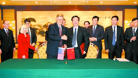 在簽字儀式前雙方進行的友好會見中,郭庚茂說,河南是中國第一人口大省,市場潛力巨大,蘊藏商機無限。近年來,盡管受到國際金融危機的沖擊影響,但是河南經濟仍然保持了平穩較快發展,特別是去年河南對外開放取得突破性進展,進出口總額超過300億美元,同比增長83%;實際利用外商直接投資超過100億美元,同比增長61.4%。這充分表明,在新的國際國內形勢下,河南的有利條件在上升,優勢在凸顯,對外商外資的吸引力正在不斷增強。