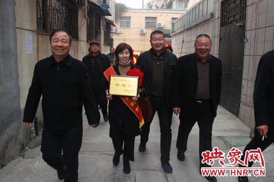 映象網訊 (記者 王文凱 通訊員 馮明獻 鄭鴻斌)“‘好媳婦’給俺兒媳婦,實至名歸!” 1月10日,高秀向的婆婆蔣淑英看著懸掛于門額的“好媳婦”牌匾說。當日,滎陽京城辦曹李村首屆“百佳”評選結果出爐,高秀向等82名村民分別榮膺優秀共產黨員、好媳婦、好婆婆、好青年。