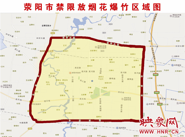 自2017年1月20日起,在滎陽市行政管理區域內實行法定區域、劃定區域(中心建成區)全面禁放,其他區域限品種燃放煙花爆竹。