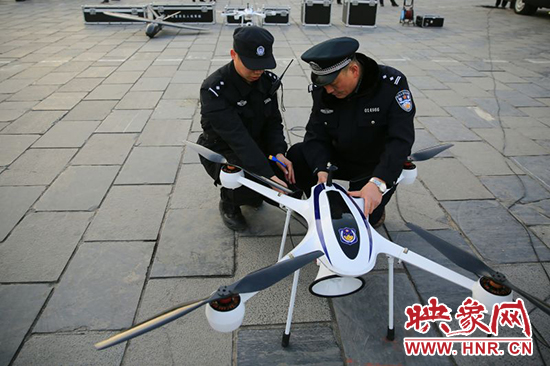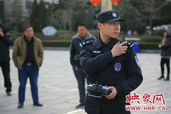 映象網(wǎng)訊(記者 王文凱 通訊員 牛智瑞 薛勇)1月20日下午,隨著首架警用無(wú)人機(jī)在滎陽(yáng)市人民廣場(chǎng)升空試用,滎陽(yáng)市治安管理正式步入“無(wú)人機(jī)時(shí)代”。這臺(tái)主要用于反恐處突、森林防火、應(yīng)急防空、交通巡查、應(yīng)急指揮、通信保障的警用無(wú)人機(jī),將在春節(jié)期間進(jìn)行空中巡邏,專盯違規(guī)在市區(qū)燃放煙花爆竹者。