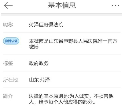 2.   認(rèn)證為“山東省巨野縣人民法院唯一官方微博”的賬號力挺馬蓉,并附文:“一紙聲明,高下立判,王寶強就這樣趕絕孩子他媽媽!”