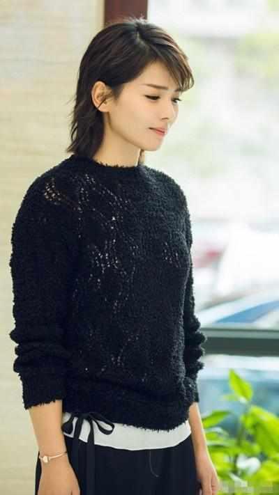 白色的內搭+黑色鏤空毛衣,一頭凌亂美的短發,側顏的劉濤安靜美好,讓人感覺很舒服!