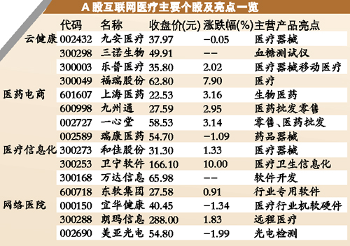 延華智能、宜華健康、和佳股份、翰宇藥業、片仔癀等公司都紛紛搶灘互聯網醫療、“云醫院”等業務。阿里健康也直言云醫院是其目前主要布局方向,東軟集團旗下熙康健康科技有限公司日前也推區域內醫院上“云平臺”。(文/表 廣州日報記者涂端玉、張忠安)