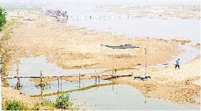 2.   黃河干流來水量不足,鄭州黃河花園口段大面積河床裸露。 新華社發