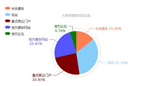 上圖可以看出,關注此事件的網絡媒體中,綜合類網站傳播活躍度最高,重點商業門戶網站和地方媒體網站旗鼓相當、緊隨其后。