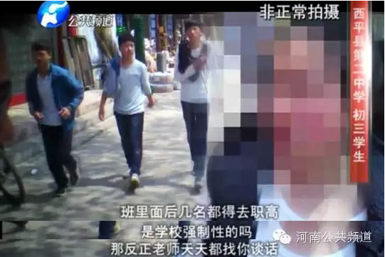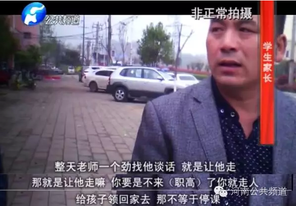 放棄了考高中,也就基本上等于放棄了上大學(xué)的機(jī)會(huì),家長(zhǎng)說(shuō),他們并不是心甘情愿讓孩子放棄中招考試的,而是老師以停課、不讓考試相威脅,他們才被迫接受。