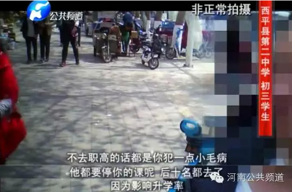 而記者還了解到,這些成績(jī)不理想的學(xué)生目前大多已經(jīng)離校,絕大部分都就讀了河南省西平縣職業(yè)教育中心——一所職業(yè)高中。