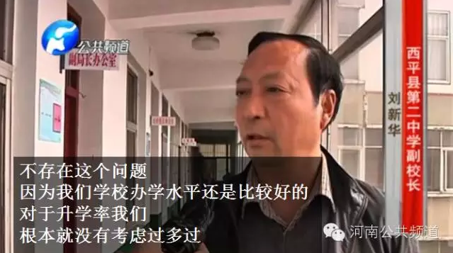 為了升學(xué)率、為了利益,不惜出賣學(xué)生嗎?為了證實(shí)家長(zhǎng)的說(shuō)法,記者又回到了西平縣二中,可是卻被學(xué)校保安拒之門外,隨后記者撥打了西平二中副校長(zhǎng)劉新華的電話。