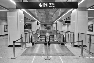 進(jìn)站通道,工人師傅正做收尾施工。