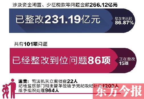 從問題金額看,審計工作報告中涉及資金閑置、少征稅款等問題金額266.12億元,已經整改231.19億元,整改率達到86.87%。 從問題數量看,審計工作報告中共有101項問題,已經整改到位問題86項,正在整改15項。 據悉,對于審計移送的違法違規問題,司法機關立案偵查22人,紀檢監察部門和主管單位給予黨紀政紀處分1209人,給予組織處理964人。其中,對企業或個人騙取生活補貼資金問題,市縣監察機關、業務主管部門在收回補貼資金1970萬元的同時,給予當事人、有關經辦人員黨紀政紀處分299人,給予誡勉談話等組織處理219人。(記者 梁新慧)