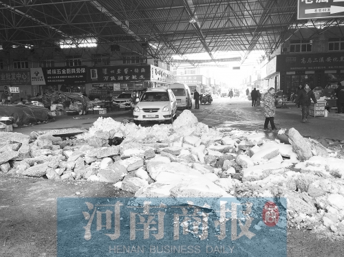 市場內經營副食的張先生說,11月14日晚,有人傾倒了大量混凝土在市場門口,封堵了市場的兩個大門。“當時有商戶報警。警察來了,但也沒攔住。聽說那些人和市場方有經濟糾紛。”張先生說。