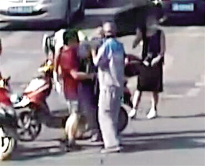 騎電動車經過的兩名男子見狀,立刻上前將王宏釗攙扶起來,緊接著又有幾位市民趕到。一名穿著紅色上衣的男子將王宏釗扛在肩頭,一位女士給王宏釗打傘遮陽,眾人一起把王宏釗轉移到路邊。聞訊趕來的其他交警在這個路口補位,繼續指揮交通。