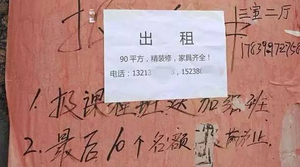 中午11點多,陪辦君在裕園小區看到了張貼在小區門口的一張“出租”宣傳頁。文中寫明:90平方米,精裝修,家具齊全。