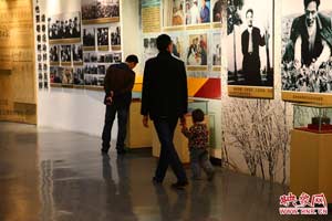 焦裕祿展覽館內的宣傳展板前,觀眾駐足觀看