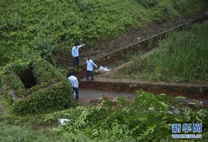 5月18日,桐廬縣富春江鎮俞趙村320國道邊的加油站前,參與事件處置的一名工作人員(右)站在槽罐車傾翻交通事故現場附近。杭州市環保局5月18日16時召開新聞發布會表示,發生在320國道浙江桐廬境內的槽罐車泄漏污染基本得到控制,此前停止取水和自來水供應的富陽市15時已經恢復供水。 5月18日3時在320國道浙江省桐廬境內傾翻的槽罐車所運輸的四氯乙烷泄漏25.8噸,經應急處置被攔截吸附17.8噸,進入事發地點附近溪流8噸左右,該溪流距離富春江2公里左右。事故發生后,杭州市及當地政府啟動突發環境事件應急預案,組織人員在四氯乙烷泄漏溝渠兩端及下游水溝設置圍壩,堵截收集地面泄漏物,防止污染進一步擴散。據最新監測數據,事發地溝渠匯入富春江入口處,未檢出該物質。新華社記者韓傳號攝