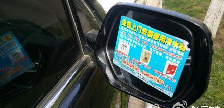 據鄭州市民劉先生報料,昨天下午兩點多,在鄭州市建業路建業花園小區,開車的時候發現愛車的后視鏡被貼上了不干膠的小廣告.“尼瑪!害得我在寒風中半個小時還沒有清干凈……”你還見過、遇到過哪些奇葩的、令人想罵人的小廣告呢?