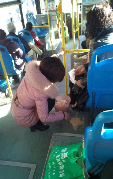 6、鄭州女乘客用衛生紙擦車上奶茶