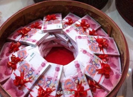 河北部分農村,結婚彩禮太高讓越來越多男青年難以娶妻,不少地方彩禮要“三斤一響”,指三斤重的百元鈔票和一輛汽車,還有的要“萬紫千紅一片綠”,即萬張五元、千張百元及大片五十元鈔票做聘禮,這些彩禮錢數粗估約12萬—20萬…你那里結婚彩禮收得兇嗎?