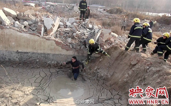 1月17日,鄭州大河路青寨村一處拆遷荒地上,中州大學一男生抄近路返校,因為內急,看四周沒有廁所,就走進附近大坑隱蔽處方便,哪知越陷越深,半個身子陷進去動彈不得。見四周無人,他趕緊撥打119求援。1個小時后被救出來。