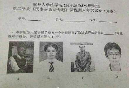 南開大學法學院某科目的期末試卷被學生上傳,瞬間引爆學生圈。同學們表示:“內傷了”“臉盲怎么辦”“想想真的很有道理啊!”…也有同學吐槽,“老師您用的是大學時候的證件照,現在不長這樣了…”這還真是一個刷臉的時代啊