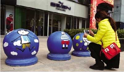 4、鄭州街頭隔離墩“穿”卡通外衣萌翻路人 網友點贊