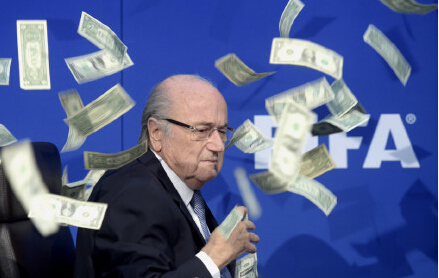 國(guó)際足聯(lián)召開(kāi)新聞發(fā)布會(huì),宣布新主席選舉將在2016年2月26日舉辦,不過(guò)發(fā)布會(huì)發(fā)生一個(gè)插曲,喜劇演員李-尼爾森突然闖入,他向布拉特不斷揮舞鈔票,并且諷刺道,”韓國(guó)拿下2026年世界杯的錢(qián)夠了吧!“隨后他把錢(qián)全都扔在了布拉特的臉上,后者一臉驚慌。