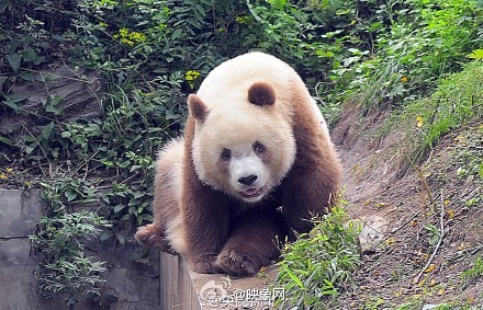 它叫七仔,今年已5歲,與其他小伙伴不同的是,他不是黑白色,而是棕白~據悉,“做舊特效”的大熊貓30年來僅發現5次,身體健康,是一種基因變異現象。