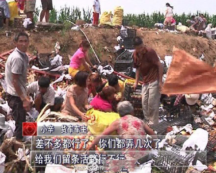 8月23日上午,辛先生駕駛的貨車在焦桐高速泌陽段發生傾翻,散落在地的20噸蘋果遭附近村民哄搶。辛先生本來以為老百姓是跑來幫忙的,沒想到一個接一個打電話,都是過來搶貨的。“差不多都行了,給我們留條活路行不行?”